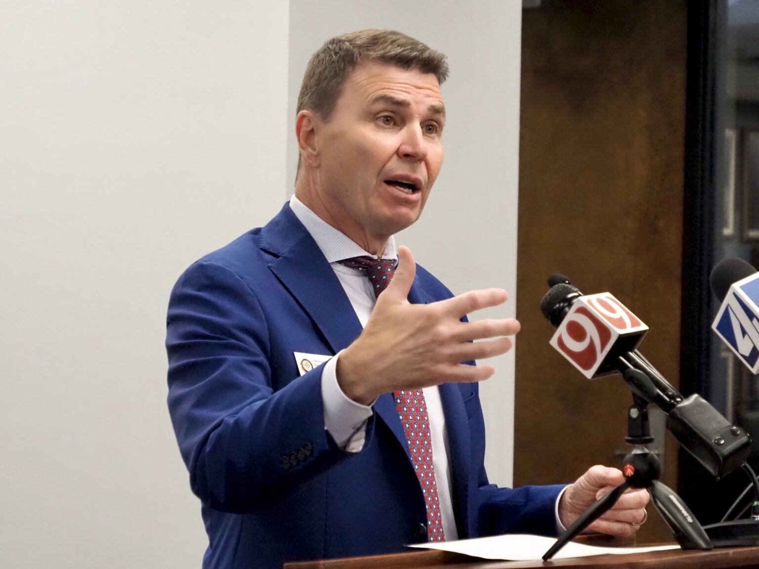 State Superintendent Lindel Fields speaks with news reporters after an Oklahoma State Board of Education meeting Thursday in Oklahoma City. (PHOTO by Nuria Martinez-Keel/Oklahoma Voice)