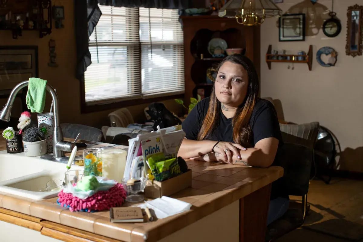 Mother of three, Brittany Sanchez, sits in her Elkhart home, 11 years after an arrest for fraudulent checks upended her life. (PHOTO by Brent Fuchs/Oklahoma Watch)