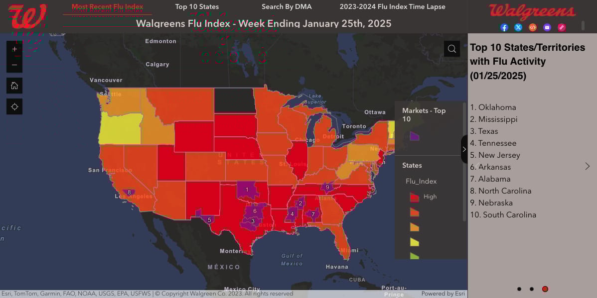 How bad is it right now in Oklahoma? It’s so bad that the Walgreen’s Flu Index has Oklahoma at No. 1 in the country for “flu activity.”