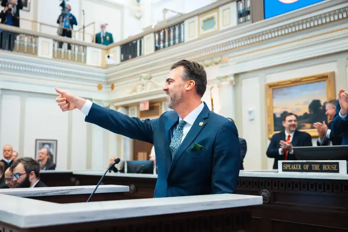 Gov. Kevin Stitt delivers his 2025 State of the State address at the Oklahoma Capitol. COURTESY