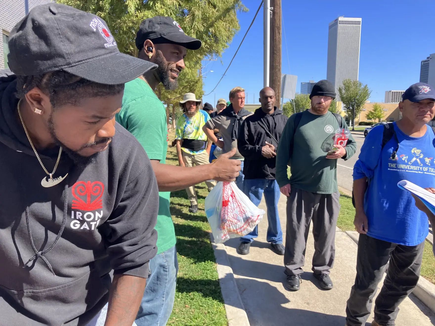 Representatives from organizations that help the homeless gathered at Tulsa Day Center Wednesday to blast Gov. Stitt’s encampment sweeps that began last month.