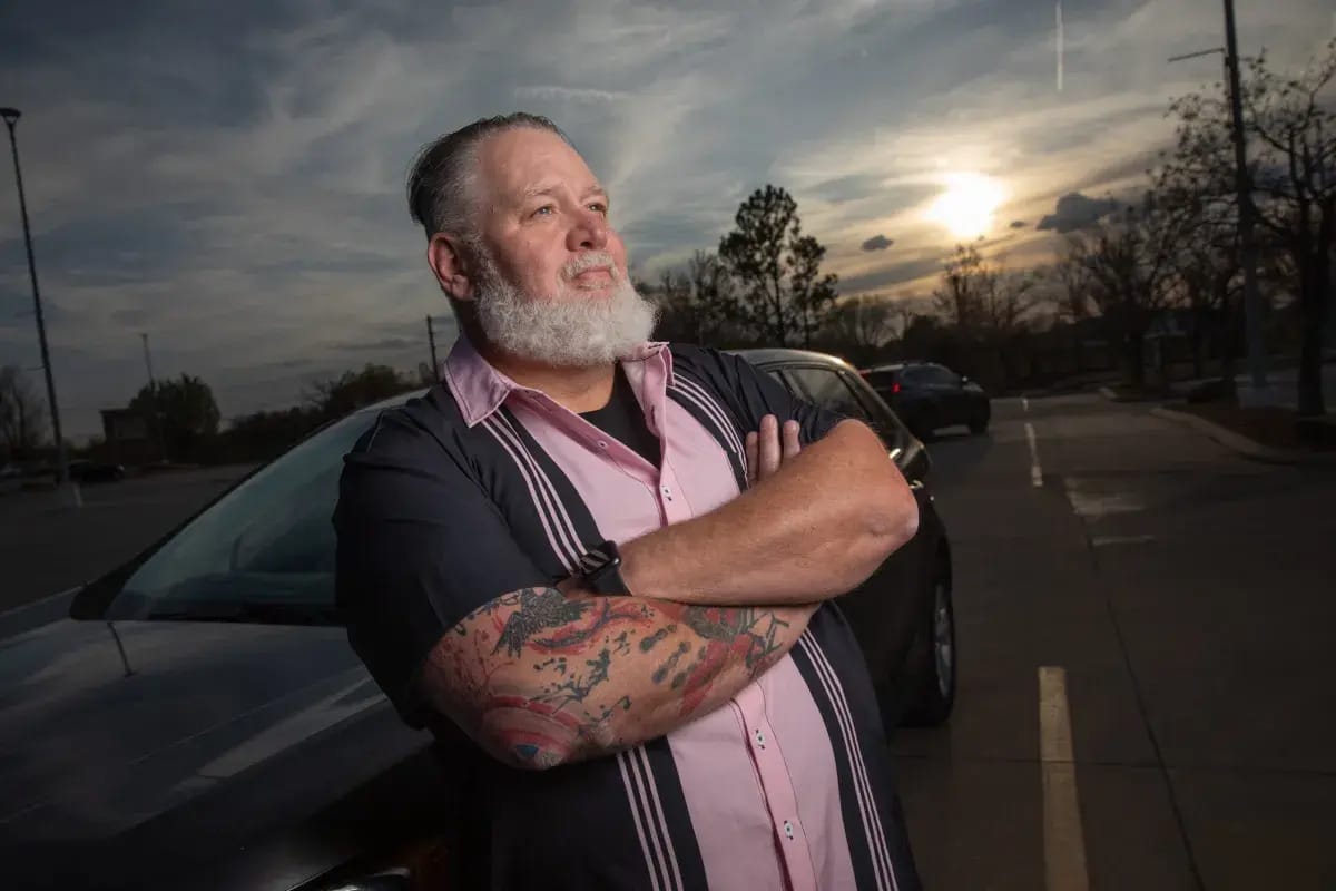 Mike Reynolds poses in Norman on Mar. 27, 2025, the day after his false rumors case was dismissed. (PHOTO: Brent Fuchs/Oklahoma Watch)
